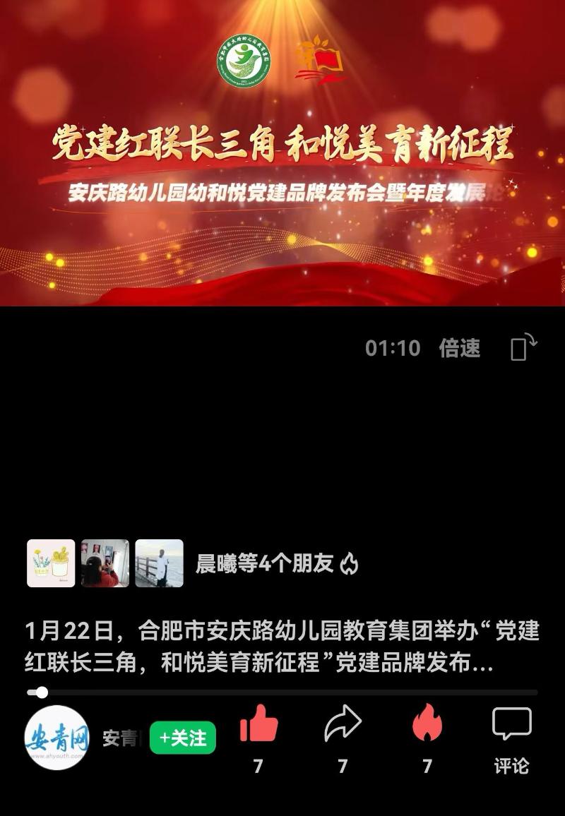 合肥市安庆路幼儿园教育集团将持续深化党建品牌内涵,以“优善慈爱”践行育人使命,用红色引擎驱动学前教育高质量发展,为长三角学前教育一体化及民族复兴大任培育时代新人贡献基层党建智慧与力量。