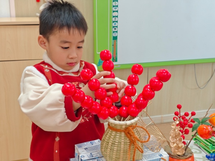 新年的序曲,从孩子们亲手点燃的仪式感开始。活动前夕,各班级化身为传统文化的“小小工作坊”。孩子们与老师一起,剪窗花、贴福字、挂灯笼、吹气球……一双双灵巧的小手,将教室装点得红火而温馨。每一处细节都流淌着童真稚趣,更承载着对新年美好的憧憬,浓浓的节日氛围在孩子们的参与中自然生发。