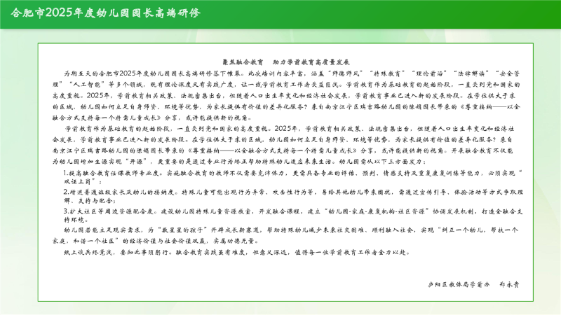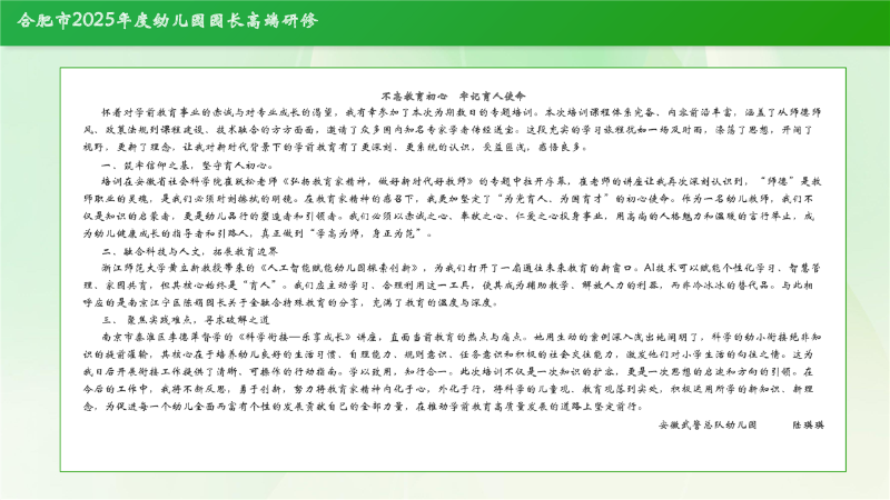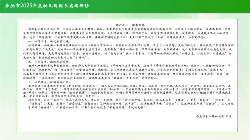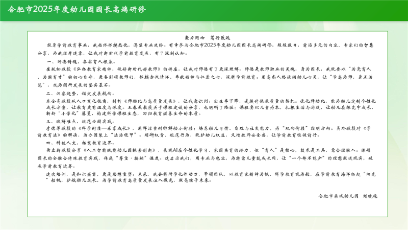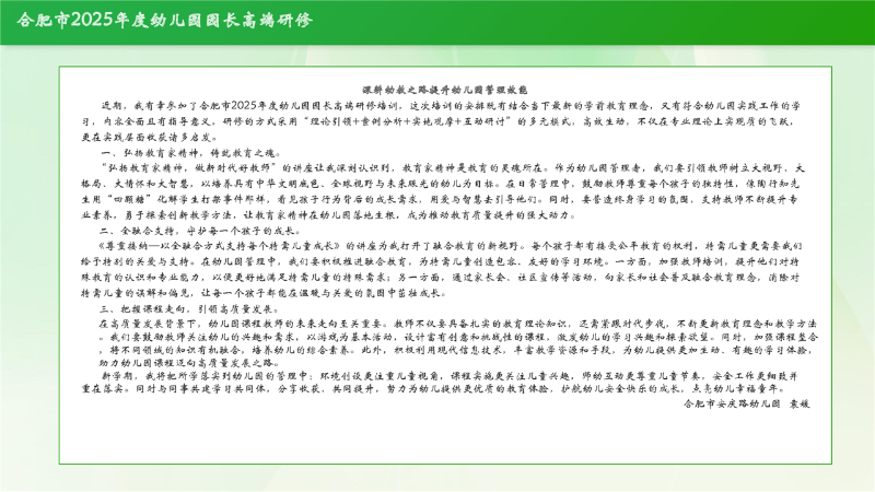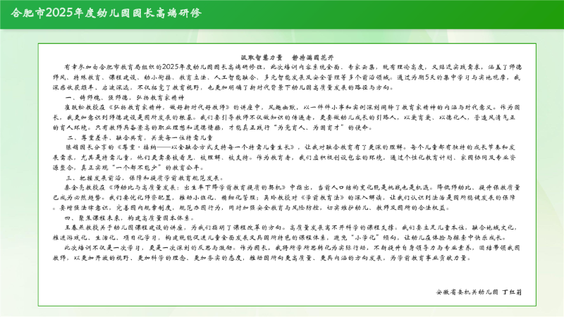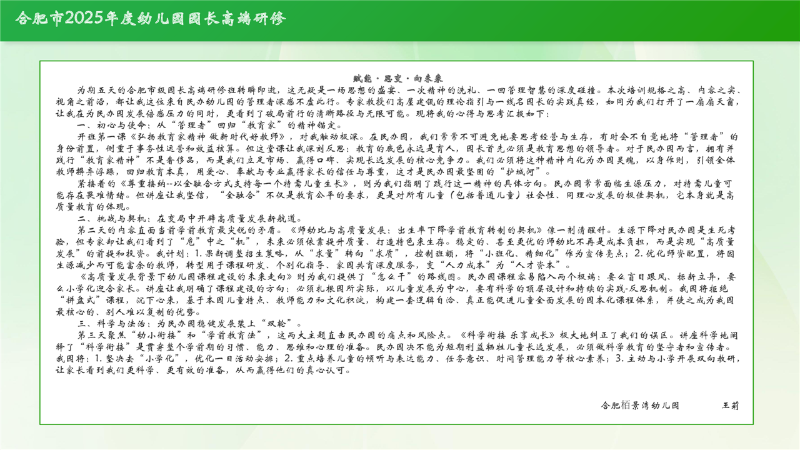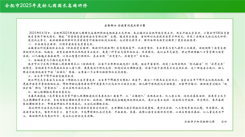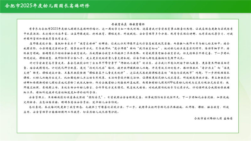 庐阳区幼儿园园长参加2025年度幼儿园园长高端研修培训简报