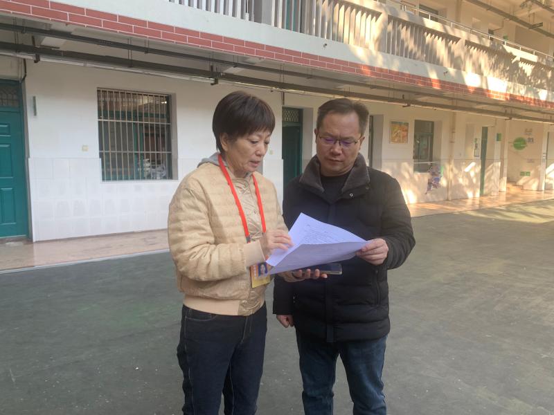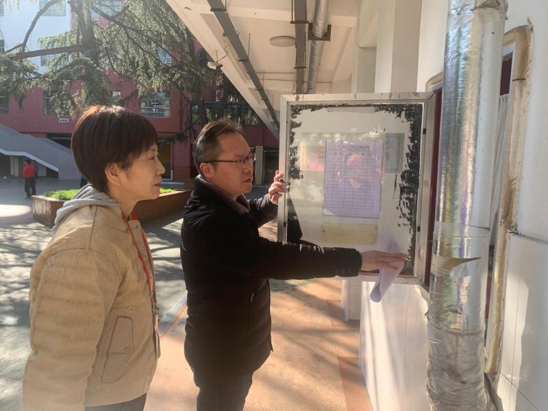 徐雄徽督学通过实地查看、查阅台账的方式,对学校安全举措的落实情况进行细致核查,认为学校工作"有制度、有行动、有实效",同时要求继续强化长效机制建设,持续巩固校园安全稳定局面。