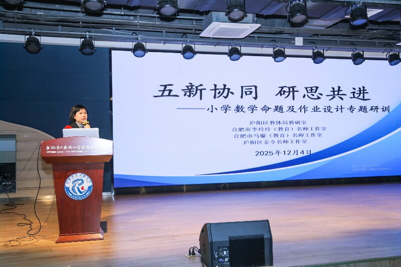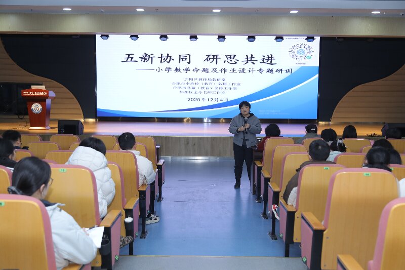 为深化新课标背景下小学数学教学改革,推动命题与作业设计从“知识巩固”向“素养生成”转型,2025年12月4日下午,由合肥市李玲玲名师工作室、马璇名师工作室和庐阳区金令名师工作室在合肥市六安路小学荣城花园分校艺体楼三楼报告厅举办“五新协同,研思共进”小学数学命题及作业设计专题研训活动。来自全区和工作室共计200多名老师都加入了这场教育盛宴,共同探讨小学数学命题与作业设计的创新路径。