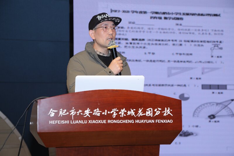 接着,活动第二板块由合肥市六安路小学中铁国际城校区吴安老师以《立足素养立意,推动命题革新》为题,从命题意义、试题命制、案例介绍三方面展开命题的培训。他结合省、市级命题案例,解读“情境化、开放性、跨学科”命题趋势,强调:“命题需从‘考知识’转向‘考能力’,通过真实问题情境考查学生数据分析、逻辑推理等核心素养,让考试成为学习的延伸。”
