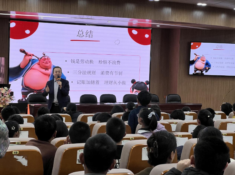 此外,他还在“理财锦囊妙计”环节里手把手教大家记账方法,科普银行存贷款利息知识,简要介绍基金等稳健理财方式,强调在家长指导下理性理财的重要性,为同学们搭建起“认知-方法-实践”的完整财商体系。