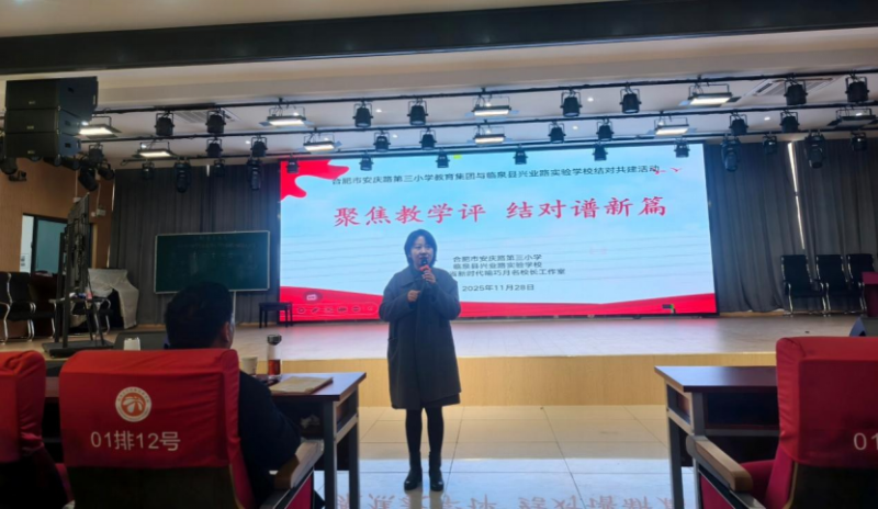 为深入落实教育优质均衡发展战略,强化临庐区域教育协同联动,发挥优质资源辐射作用,聚焦“教学评一体化”核心课题,11月28日,合肥市安庆路第三小学教育集团校长、安徽省新时代喻巧月名校长工作室主持人喻巧月带领语文、数学、英语学科骨干教师,赴临泉县兴业路实验学校开展结对共建主题活动。两校以课堂为核心、教研为纽带,通过校园参观、课例展示、互动评课、总结交流等环节,搭建起互学互鉴、共同进步的教育桥梁。