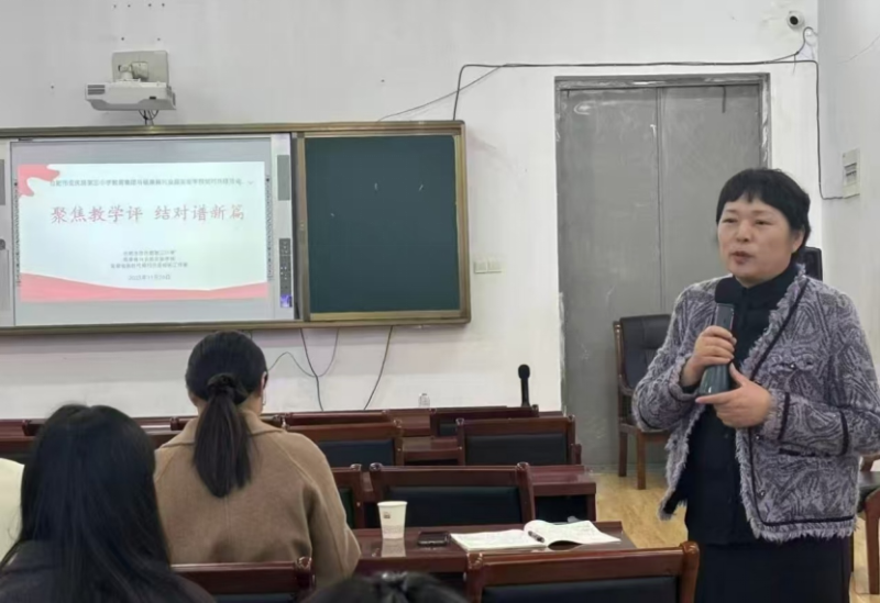 总结交流会上,安三教育集团校长、安徽省新时代喻巧月名校长工作室主持人喻巧月围绕“教学评一体化”作专题微讲座。结合研究实践和典型课例,喻校长阐释实施“教学评一体化”的核心要义,要以核心素养锚定目标为前提,统合“学、教、评”逻辑;要以闭环评价嵌入教学为关键,让评价发挥导航催化作用。