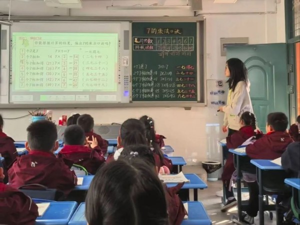 陈晓倩老师执教苏教版二年级上册《7的乘法口诀》。立足二年级学生认知特点,陈老师将数学知识与生活情境深度融合,设计“编口诀、找规律、对口令”等丰富互动环节,把抽象的乘法口诀转化为具象化的探索过程。学生在动手操作与小组合作中积极思考、主动参与,不仅扎实掌握7的乘法口诀,更真切体会到数学与生活的紧密联系,充分彰显了“以学生为中心”的课堂设计理念。