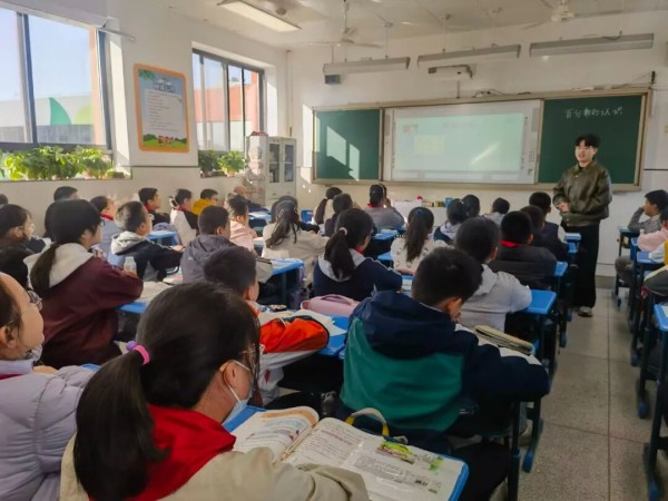 段倩倩老师带来苏教版一年级上册《认识11~19》一课。她以生活场景自然导入,遵循“具象到抽象”的认知规律,从实物数数、拨计数器的动手操作,逐步过渡到数线图上的数序认知与大小比较,助力学生稳步构建数感。通过“怎样摆小方块能一眼看出数量”“十几数的共同特征”等针对性问题,引导学生开展小组讨论,鼓励大胆表达思考见解,在思维碰撞中深化知识理解,同步提升语言表达能力。