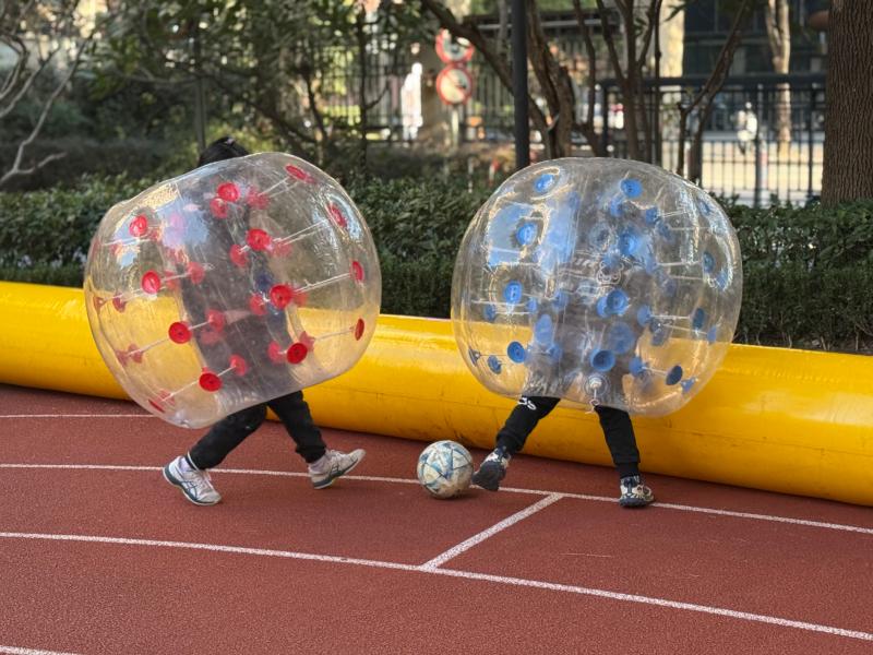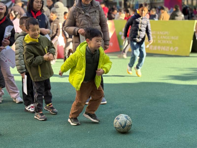“翼起足球嘉年华” 活动现场氛围热烈、组织有序,充分展现了上外 - 黄浦外国语小学在体教融合、活动育人方面的丰硕成果与鲜明特色。嘉年华内容丰富多彩,融合运动挑战、趣味体验与文化展示:“4V4 笼式足球” 吸引学生踊跃参与;“点球之王”“指哪打哪” 等互动环节激发拼搏精神;“纪念海报拍摄” 区域用影像定格孩子们的活力瞬间。我校教师代表深入各个活动区域,认真观摩、细致交流,对其以足球为载体,系统性培养学生团队协作、意志品质和综合素养的实践模式给予高度评价。
