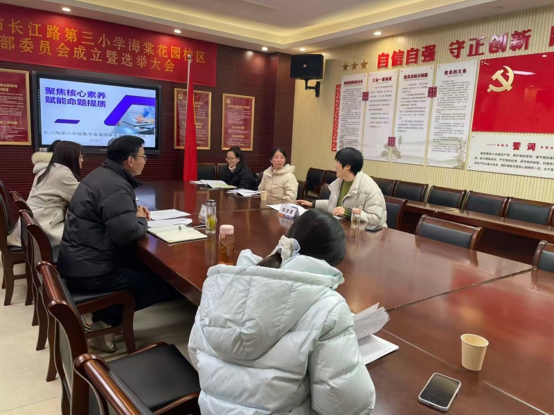 为深入践行《义务教育数学课程标准(2022年版)》理念,精准把脉学期评价导向,提升教师命题与研卷的专业能力,长三小海棠花园校区数学组于12月23日下午3:30启动期末自主研卷专项工作,校党总支部书记、校长黄涛全程参与并指导本次研卷活动的开展,全体数学教师以年级为单位深度参与,开启为期两周的命题研磨攻坚。