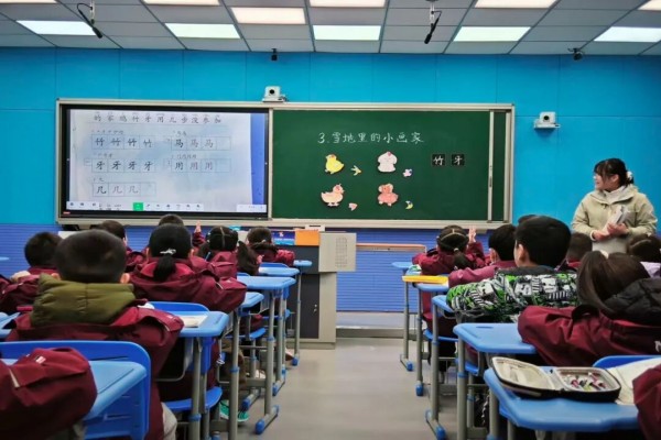 低年级课堂上,童趣与诗意相映成趣,让语文学习扎根生活土壤。一年级的《雪地里的小画家》成为老师们挥洒创意的舞台。