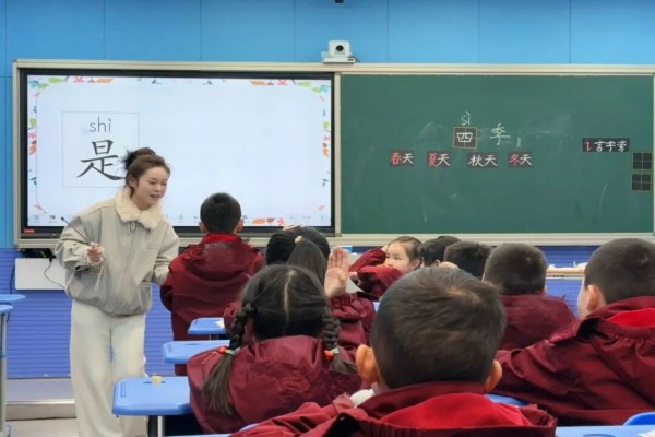 彭葳老师以“趣味识字·品读四季”为主题,紧扣低年级语文要素设计课堂。课上通过猜季节游戏、情境活动、角色扮演等形式,带领学生随文识字,讲解象形字与偏旁知识;聚焦春天小节,引导学生品读韵文、仿说表达,让学生在趣味互动中夯实识字朗读基础,感受四季之美。
