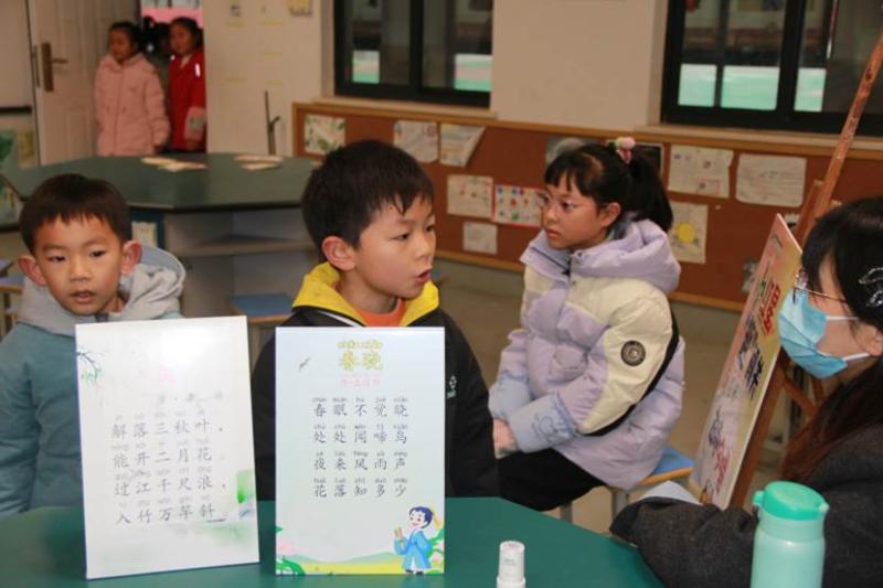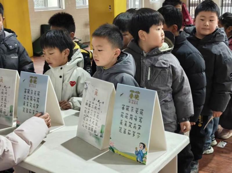 第四关“古诗吟唱”,同学们从《风》《春晓》中任选一首,先进行指读,再饱含感情地吟唱。古诗与音乐的交融,让经典诗词在韵律中焕发新生,孩子们的吟唱或婉转悠扬,或明快活泼,在沉浸式的体验中感受中华传统文化的独特魅力,让千年经典在校园里绽放出别样的光彩。