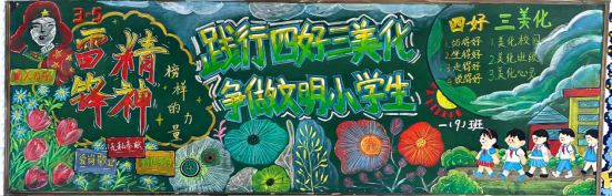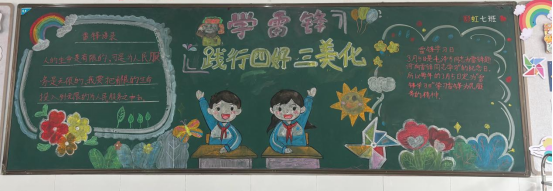 同时,各班同步打造主题黑板报,以雷锋精神、“四好三美化”为核心,用文字与色彩传递文明理念,让黑板报成为校园文明宣传的靓丽阵地,让学雷锋、守规范的理念深入人心。