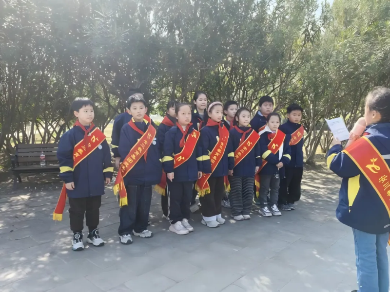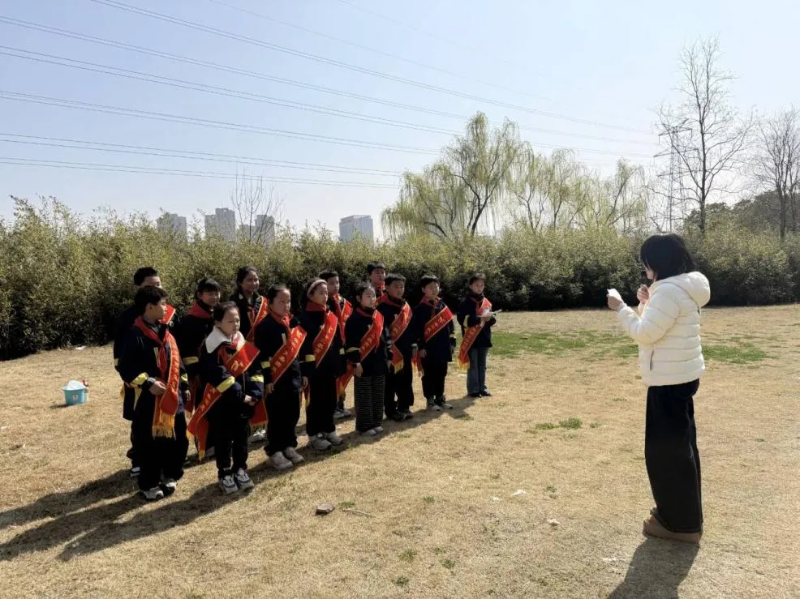 活动最后,中队辅导员柴燕老师对本次活动进行总结。她充分肯定了队员们在活动中展现出的勇敢、认真与良好文明素养,也感谢家长志愿者们的全程参与和大力支持,正是校家社的携手同行,让本次实践活动更有温度、更有成效。柴老师鼓励孩子们将爱绿护绿的意识融入日常学习生活,从身边小事做起,践行文明礼仪,争做生态文明小卫士,同时希望校家社继续携手,让绿色教育、礼仪教育成为校家社协同育人的重要底色。