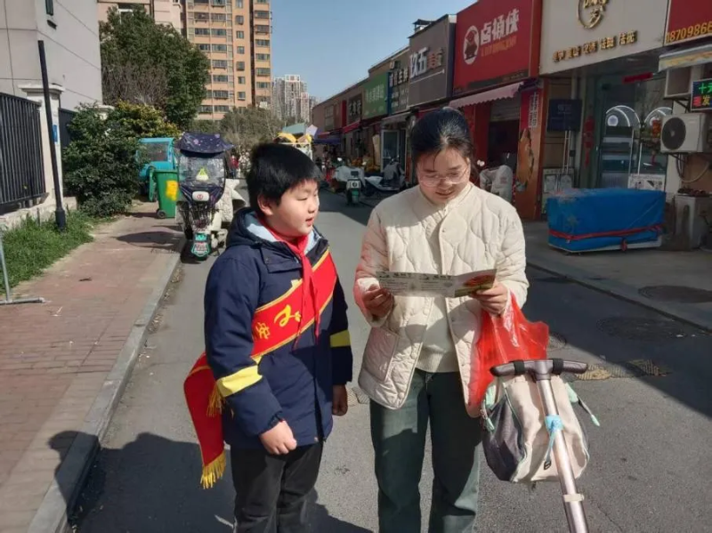 随后,追光小队的队员们化身“小小环保宣讲员”,在老师和家长的陪伴下,手持图文并茂的环保宣传单,落落大方地走向街头、走近路人。他们用稚嫩却坚定的声音,向市民普及保护森林、低碳生活的理念,用童真的语言讲述守护绿色家园的重要性,以文明的言行展现安三红领巾的良好风貌。家长志愿者全程守护,为孩子们鼓劲加油,成为孩子们传递绿色理念的坚强后盾。一句句真诚的倡议,一个个认真的身影,不仅传递着生态文明的初心,更将校园的文明礼仪教育延伸至社会,感染了身边每一位听众,赢得了路人的驻足倾听与纷纷点赞。