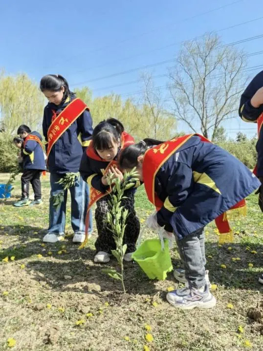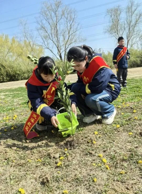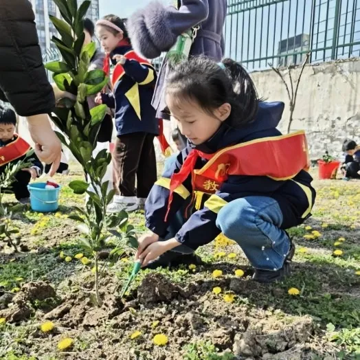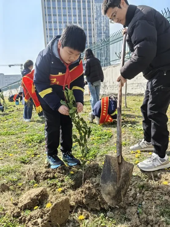 在3月21日“世界森林日”来临之际,为厚植学生生态文明理念,落实校家社协同实践育人要求,紧扣学校三月份“文明礼仪教育月”德育工作主题,3月14日上午,合肥市安庆路第三小学灵溪校区三(10)中队追光小队,在中队辅导员柴燕老师的带领下,携手家长志愿者,精心开展“植此青绿 森森不息——从一棵树到一片林”主题校家社协同实践活动。队员们以手植绿、以行践知,在亲身体验中播撒绿色种子,在家校携手间培育责任担当、践行育人初心。