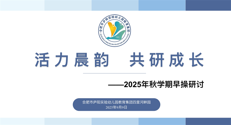 为进一步加强早操的科学规范编排,促进幼儿身体动作发展,2025年9月9日,合肥市庐阳实验幼儿园教育集团四里河畔园全体教师聚焦不同年龄段孩子发展需求,切实助力孩子们在运动中健康快乐成长,开展新学期早操研讨活动。