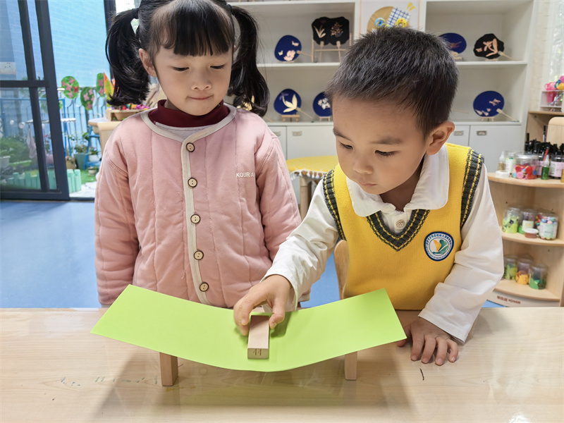 看着自己搭的桥能让玩具车顺利通过、不再倒塌,幼儿们收获了满满的成就感!