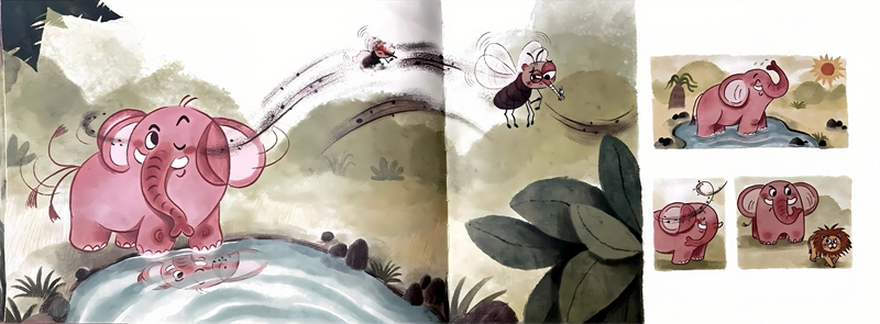 可是,大象的耳朵眼儿里,经常有小虫子飞进去,还在里面跳舞,吵得他又头痛,又心烦。