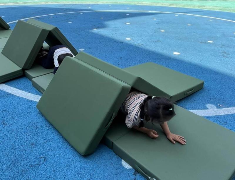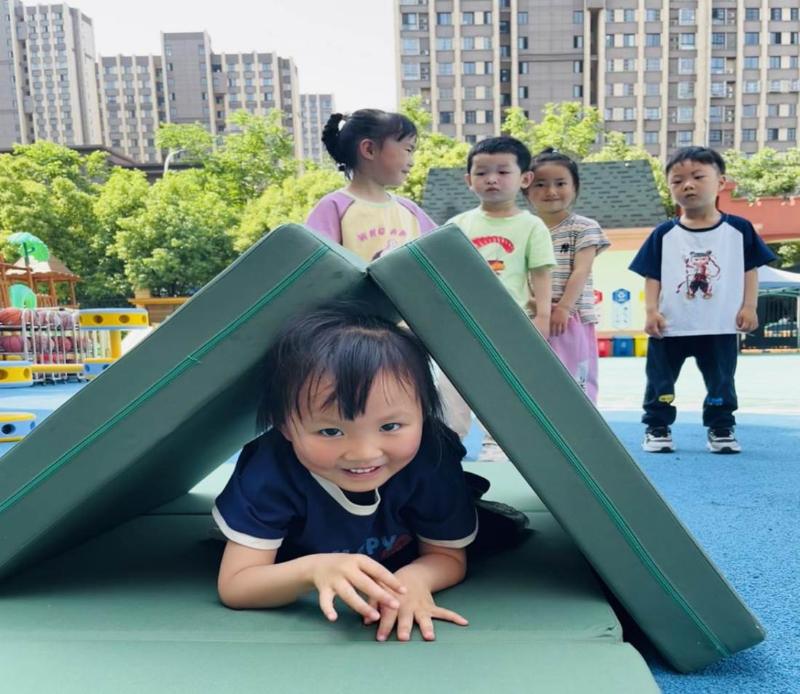 在 “垫子的多种玩法” 主题活动中,孩子们尽情释放爱玩天性,以垫子为载体展开趣味探索。从灵活地攀爬翻滚,到勇敢地跨越跳跃,再到默契十足地合作搭建,每一个游戏瞬间都成为锻炼走、钻、爬、滚、跳等运动能力的生动课堂,也悄然滋养着他们的合作与交往能力。这场充满创意的垫子挑战之旅仍在继续,随着孩子们探索的深入,游戏玩法必将不断推陈出新。让我们满怀期待共同见证孩子们解锁更多新奇有趣的游戏,在欢乐中收获成长!