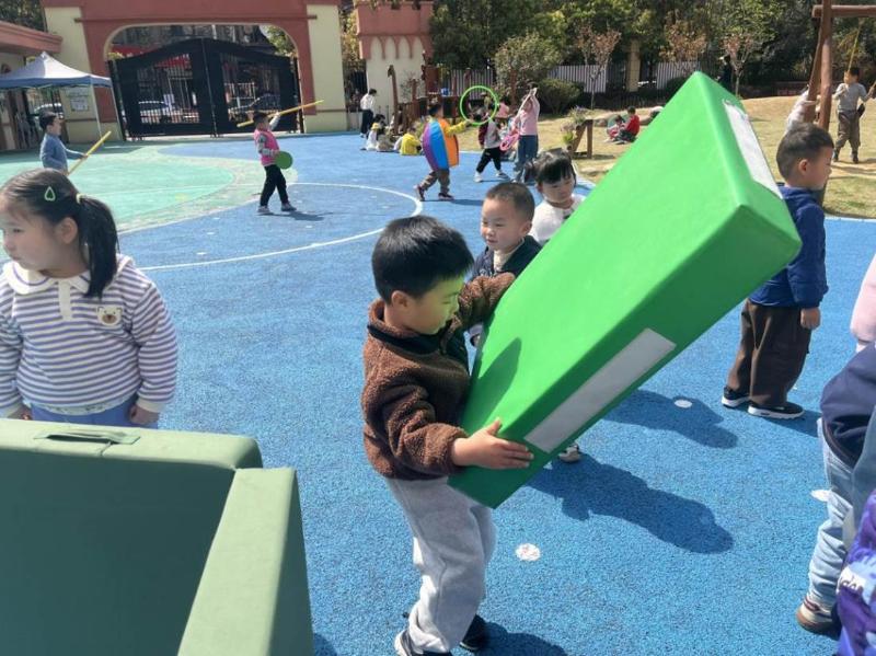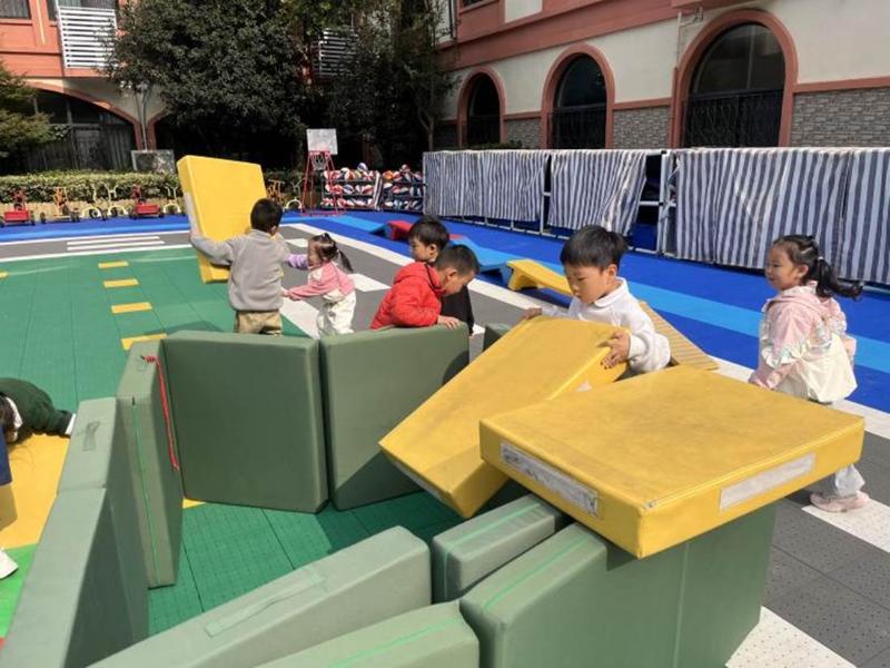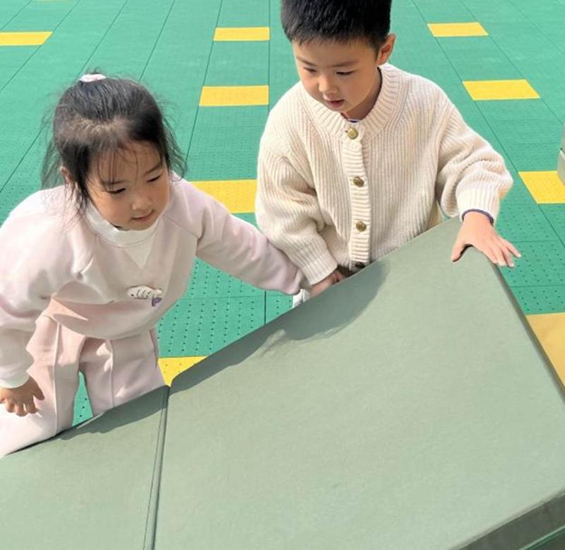 孩子们对垫子游戏的想法也变得越来越多,他们一起创想了垫子更多玩法。