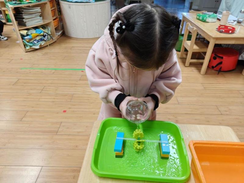 孩子们若有所思地点点头,又开始新一轮的尝试。他们有的记录不同水流下风车的转动速度,有的互相交换风车比较差异,小小的水盆旁,充满了探索的乐趣和发现的惊喜。每一次风车的旋转,都让孩子们对“水的力量”有了更真切的感受。