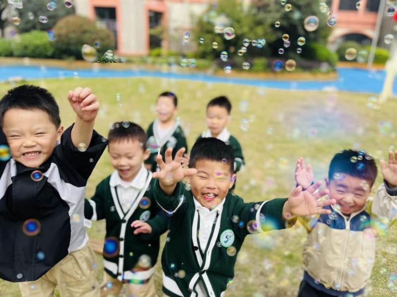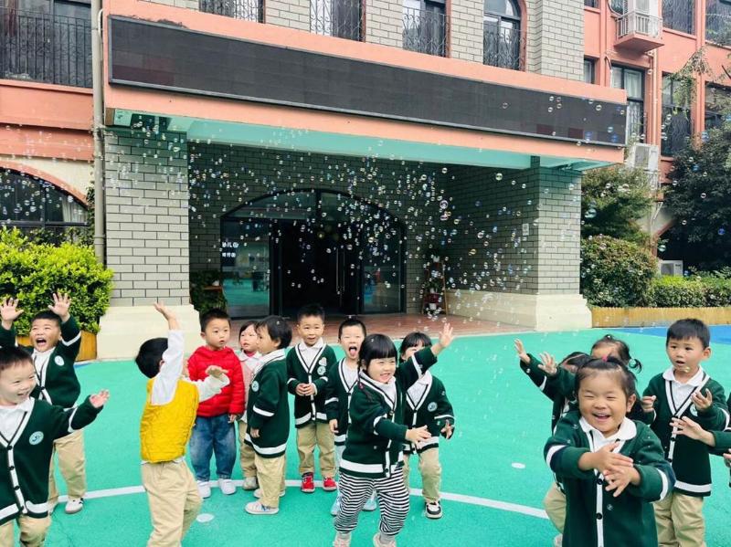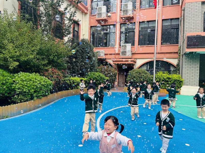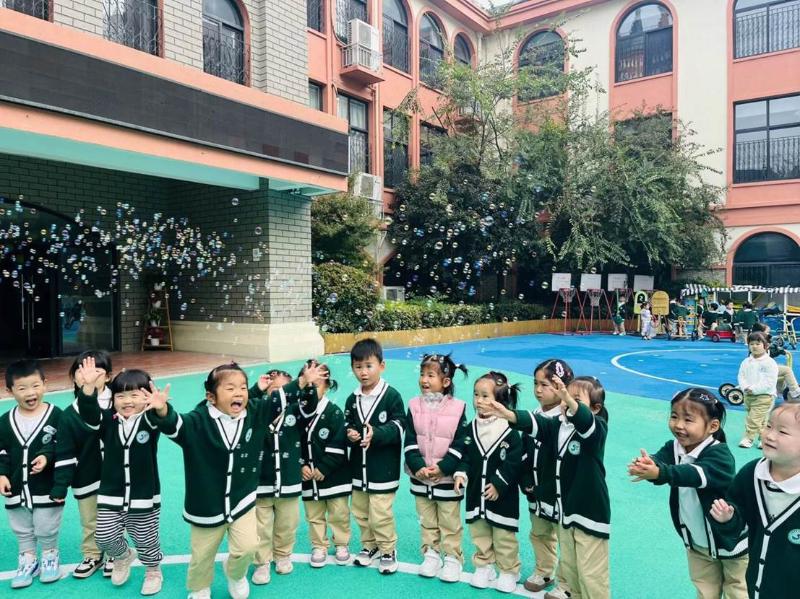 “老师,快看!我吹出大泡泡啦!”阳光洒满幼儿园的草坪,小一班的孩子们围着装满泡泡水的容器,兴奋地呼喊着。轻轻挥动泡泡棒,一个个五彩斑斓的泡泡飘向空中,孩子们立刻欢呼起来,纷纷伸出小手想要抓住泡泡。他们追逐着、欢笑着,观察着泡泡在阳光下闪烁的色彩,感受着泡泡的轻盈与美丽。