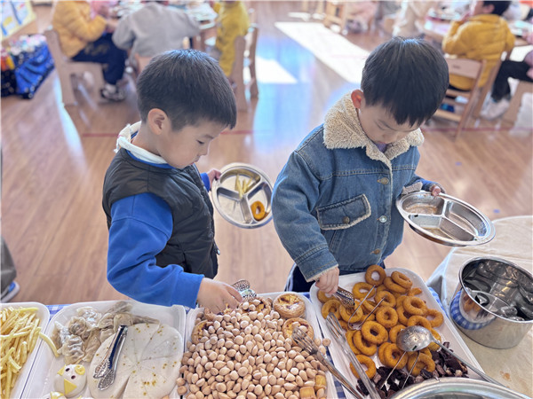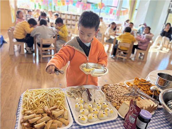 为将生活教育融入幼儿日常,让孩子们在自主体验中学会合理膳食、懂得节约分享,2025年11月26日,合肥市安庆路幼儿园教育集团城市之光分园精心策划了一场充满仪式感的自助餐活动。孩子们在丰富的美食盛宴中感受集体生活的温暖,在自主选择中提升生活能力,度过了一段鲜香四溢的欢乐时光。