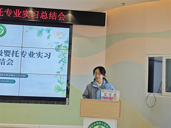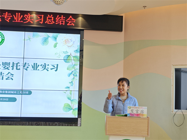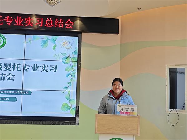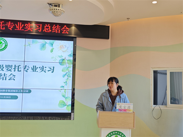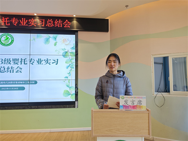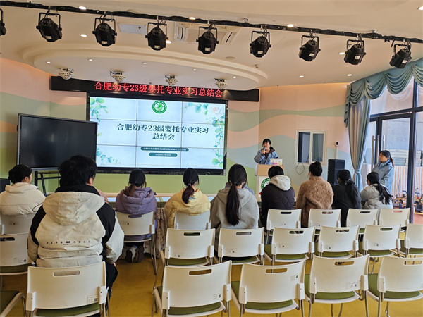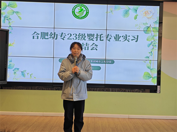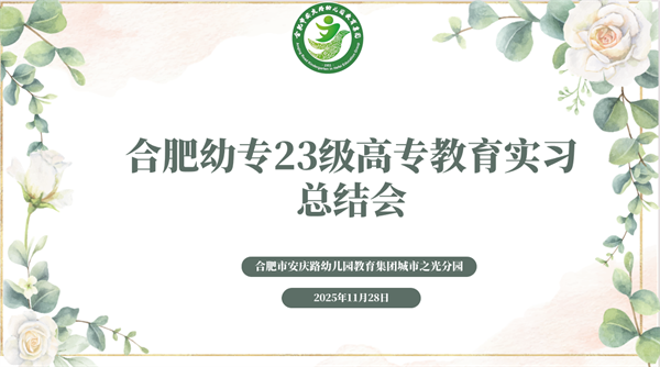 教育是一场向美而行的遇见,实习是将所学理论联系实际工作的重要途径。2025年11月28日上午,合肥市安庆路幼儿园教育集团城市之光分园为来自合肥幼专2023级婴托专业的同学们召开了实习总结会,回顾他们为期四周的实习生活,并为她们即将踏上的新征程送上最诚挚的祝福。