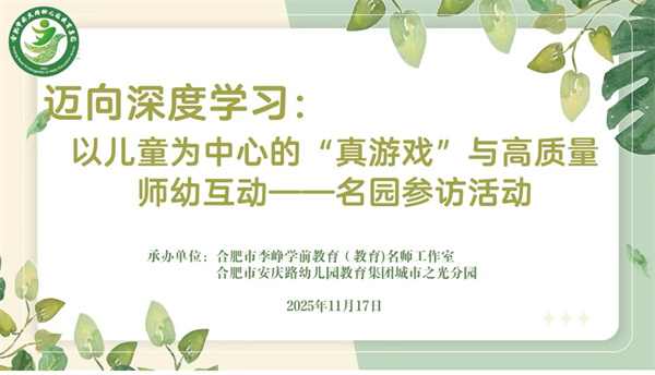 2025 年 11 月 17 日下午,合肥市李峥学前教育(教育)名师工作室联合安庆路幼儿园教育集团城市之光分园,以 “真游戏” 与高质量师幼互动为核心,成功举办学前教育名园参访活动。来自全省各地的幼教同仁齐聚安幼城市之光分园,通过实地观摩、专题分享、课程展示等多元形式,共探以儿童为中心的深度学习实践路径,感受教育家精神引领下的学前教育新生态。