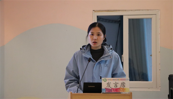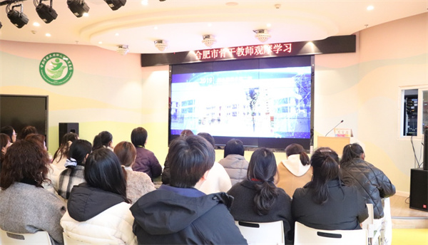 参访伊始,参访教师在多功能厅观看了安幼教育集团专题宣传片。片中生动呈现了园区以儿童发展为本的教育理念,从环境创设到课程构建,从师幼互动到家园协同的全方位育人实践。随后,袁媛副书记致欢迎词,对各位教育同仁的到来表示热烈欢迎,并分享了园区在践行教育家精神、深耕学前教育领域的初心与探索,期待以此次参访为契机,搭建交流共享的优质平台。