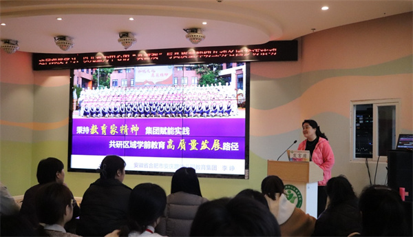 环境观摩结束后,嘉宾们重返多功能厅,开启专题分享与课程展示环节。合肥市李峥学前教育(教育)名师工作室主持人、安幼教育集团总园长李峥以 “秉持教育家精神 集团赋能实践 共研区域学前教育高质量发展路径” 为题,结合集团化办学经验,从理论高度与实践案例出发,阐述了如何以教育家精神引领教师专业成长,通过集团赋能推动区域学前教育高质量发展,为在场同仁提供了宝贵的顶层设计思路。