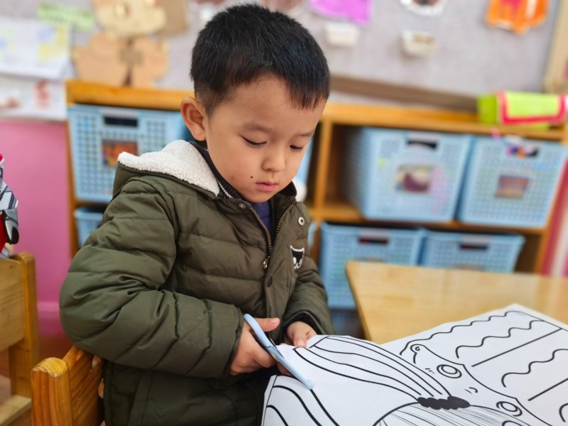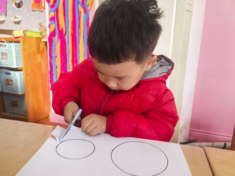 在自由创作环节,孩子们尝试画出自己喜欢的爱心、小花、小鱼等图案,再拿着小剪刀沿着画好的轮廓慢慢裁剪