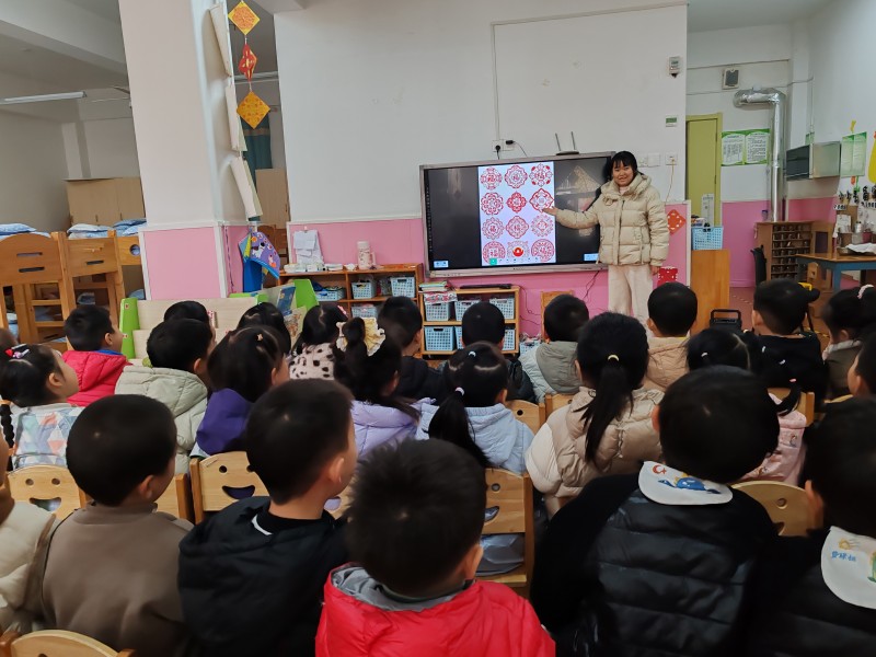 临近元旦,结合节日氛围营造的需求,以及幼儿对“对称图形”的隐性兴趣,幼儿通过窗花欣赏与初步接触,感受到对称图形的美感,感知剪纸与节日的关联。