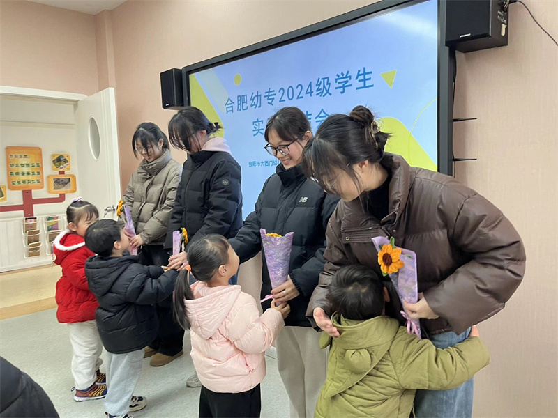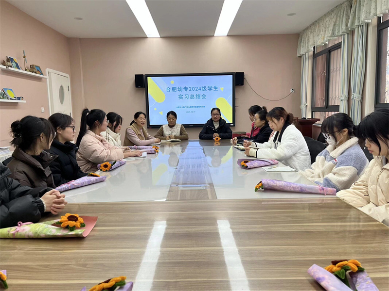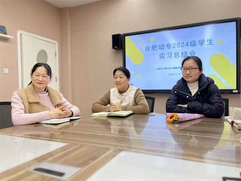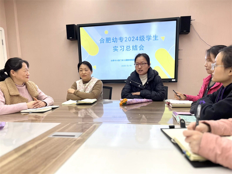 2025年12月19日下午,合肥市大西门幼儿园教育集团畅和分园会议室内洋溢着青春与教育的氛围。合肥幼专2024级14名学前教育实习生为期两周的实践学习圆满结束,一场充满温情的总结会为实习画上祝福的句点。