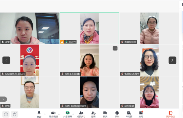活动聚焦“AI技能分享”核心环节,四位教师依靠云端,带来信息技术实用技巧。汪雯老师以剪映软件为切入点,详细讲解如何借助工具制作趣味教学动画,为幼儿语言活动增添生动趣味;金晶老师分享了运用Deepseek制作微课的方法,从脚本生成到内容优化,一步步拆解实操流程;杨瑜老师则围绕Deepseek的使用技巧展开,着重讲解如何设置精准口令,让AI工具更贴合幼教场景的实际需求。孟菁华老师分享了巧用百度文库制作AI绘本的方法,以及运用元宝工具快速生成教学思维导图的实操步骤,为教学资源开发与课程梳理提供了新方案。老师们的分享兼具理论性与实操性,为AI技术融入日常教学环境提供了清晰路径。主持人陈天竹表示,信息技术发展日新月异,创新迭代速度不断加快,身为幼教工作者,如何紧跟技术发展步伐,将信息技术与幼儿教育规律有机结合,让技术真正服务于幼儿成长和教学提质,是值得所有人深入思考的重要课题。