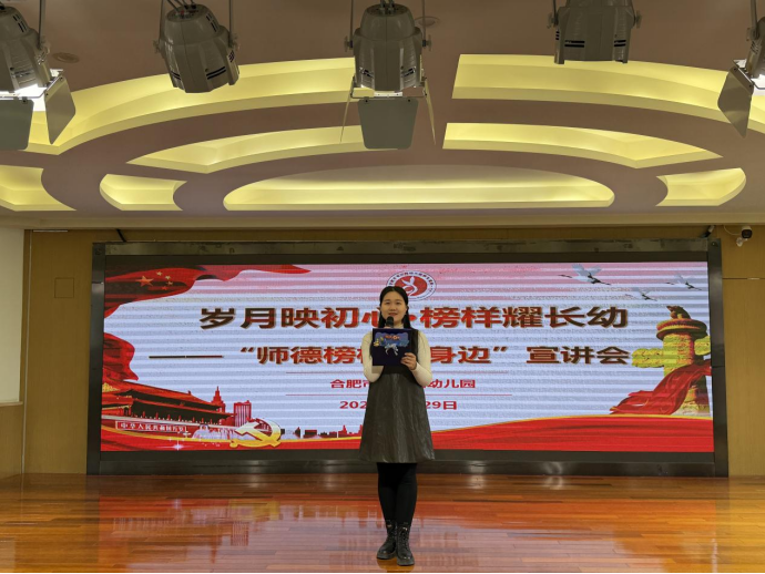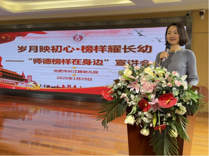 为积极践行庐阳区教体局“师德榜样在身边”活动精神,弘扬教育家风范,凝聚育人共识,1月28日上午,合肥市长江路幼儿园教育集团在总园隆重举行“岁月映初心·榜样耀长幼”师德宣讲会。长江路幼儿园教育集团党支部书记、总园长丁婕,各分园行政人员及一线教师代表齐聚一堂,共同聆听身边榜样故事,汲取教育前行力量。