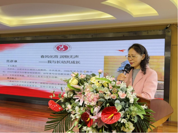 在随后的分享环节,四位来自不同园所的教师代表依次登台,讲述了她们在平凡岗位上的动人故事: