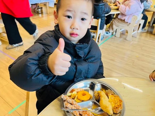 “自助餐开始啦!”随着老师的温柔宣告,期待已久的美食盛宴正式拉开帷幕。孩子们洗净小手,手持餐盘,自觉排起整齐的队伍,有序走向取餐区。小小的身影穿梭在餐台之间,眼神中满是兴奋与认真,有的宝贝踮起脚尖,小心翼翼地夹起一块鳕鱼排;有的孩子懂得“少量多次”,先取少许蔬菜尝试;还有的主动谦让同伴,“你先选吧,我等一等”,稚嫩的话语中尽显文明素养 。