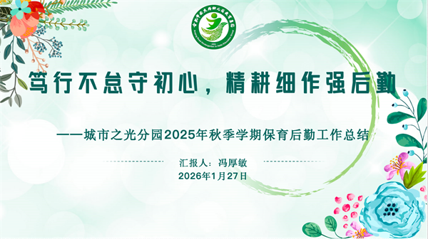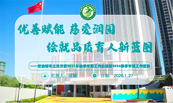 时光荏苒,耕耘收官。为全面梳理2025年秋季学期工作成效,明确新学期发展方向。在安庆路幼儿园教育集团总园长李峥的统一部署下,2026年1月27日下午,安幼城市之光分园召开“童心筑梦话成长 聚力赋能启新程”学期工作总结会。会议由党支部副书记袁媛主持,全体教职工参会聆听,在沉淀中凝聚共识,在规划中蓄力前行。
