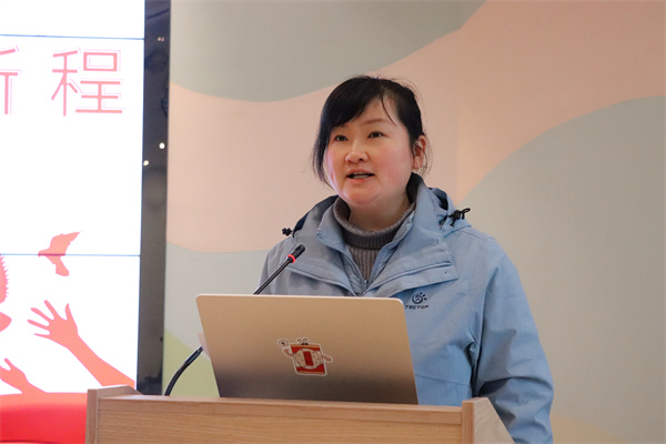 首先,党支部副书记袁媛作《优善赋能、慈爱润园、绘就品质育人新蓝图》园务工作总结。贯穿党建引领、师德建设、课程创新、家园共育及后勤保障全链条,系统回顾了学期园所整体工作,肯定了各部门协同推进的良好态势,并指出当前存在的不足之处:党建工作创新活力不足;教研工作深度不足且形式单一;保育人员参教融合水平有待提升。随即聚焦问题对城市之光分园2026年的工作思路指明方向,强调新学期将持续强化党建引领,深化师德师风建设,促进保教融合高质量发展,深度融入“优善慈爱教育”理念与“YUE动庐阳,欢乐校园”建设要求,全体教职工需秉持教育初心,怀揣育人热忱,砥砺深耕、奋楫争先,奋力打造有温度、有内涵、有特色的学前教育品牌。