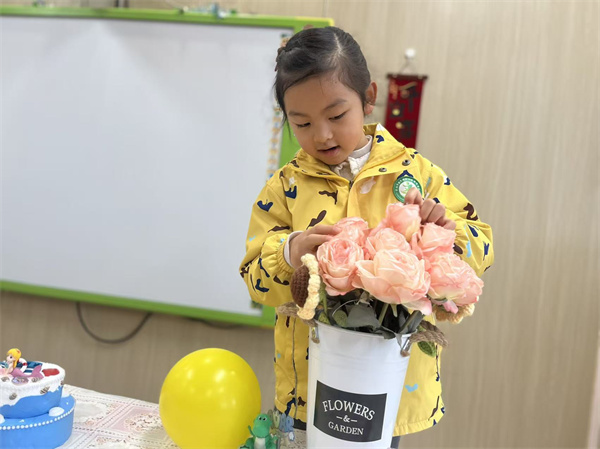 在孩子们迫不及待的目光中,自助餐开始了,老师们化身“美食引导员”,鼓励孩子们按需取餐、自主搭配,既教会大家使用公勺公筷的卫生礼仪,也引导他们懂得“不浪费、不挑食”的道理。孩子们手持餐盘,有序挑选心仪的食物,同时兴奋地和同伴分享自己的选择,脸上满是自主选择的成就感。一张张笑脸、一声声欢笑,让整个班级充满了温馨与活力。
