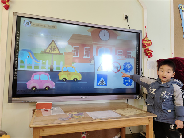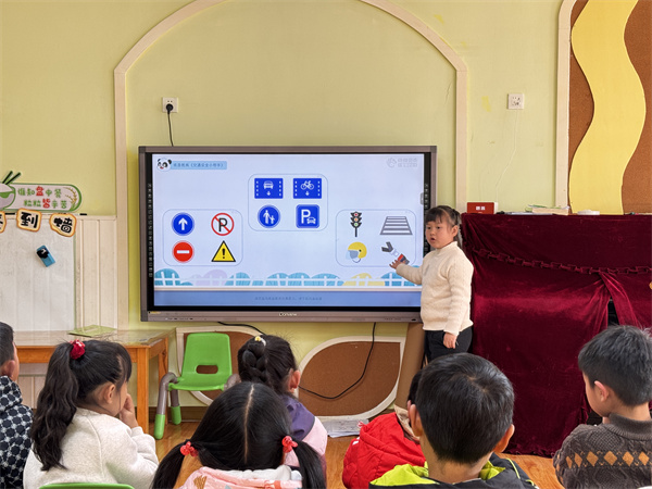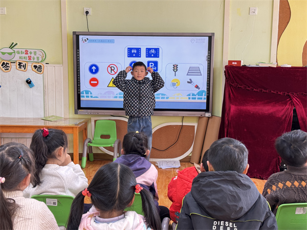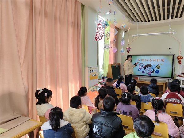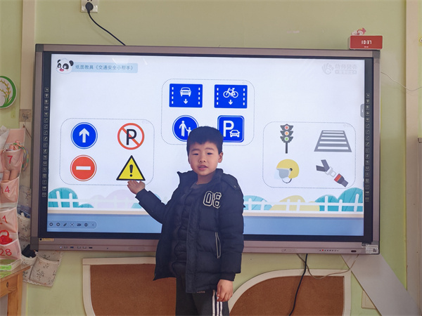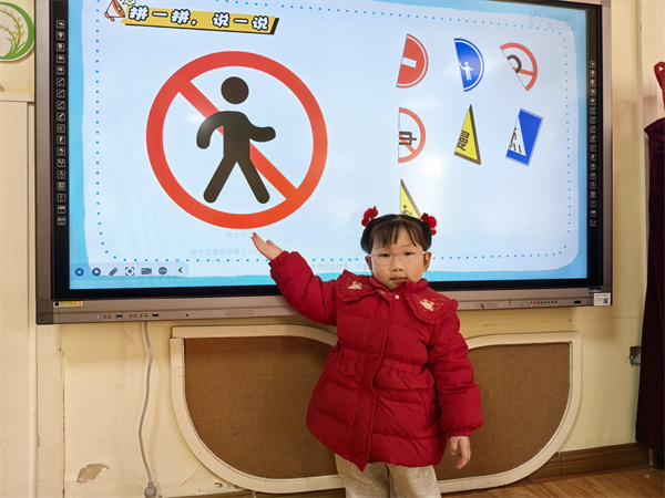 中班的活动则更加深入,聚焦于交通标志的理解与运用。孩子们首先通过对比“有标志”和“无标志”的马路图片,直观感受到交通标志作为“无声交警”的重要性。随后,教师引导孩子们认识了人行横道、步行、禁止停车、禁止鸣笛、慢行、注意儿童等6-8种常见标志,并通过观察对比,初步发现了指示标志(蓝底)、禁令标志(红圈)、警告标志(黄三角)的外观特征与不同含义。在“消失的交通标志”情境游戏中,孩子们化身“交通安全小卫士”,在实践中巩固了对标志含义和作用的理解。