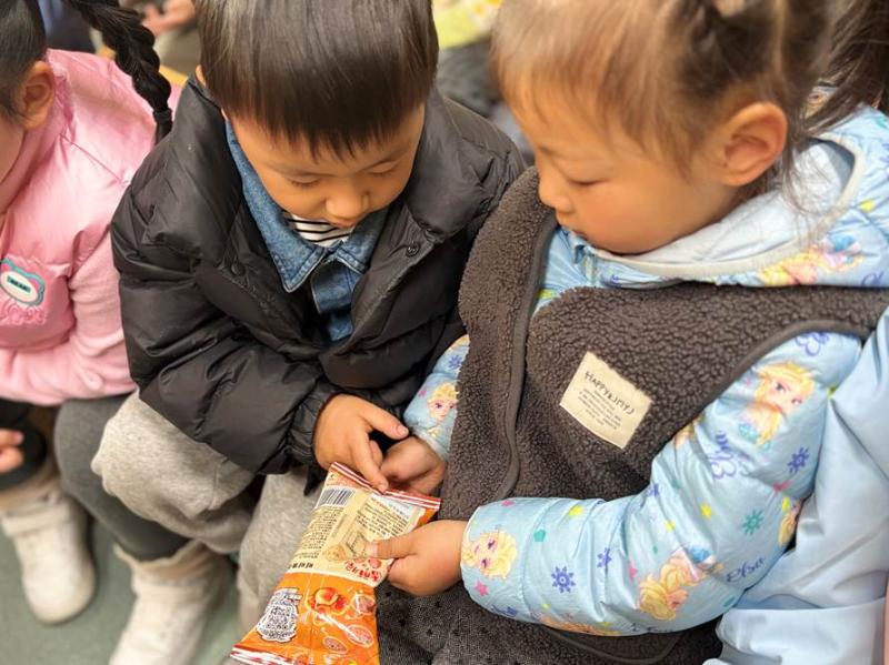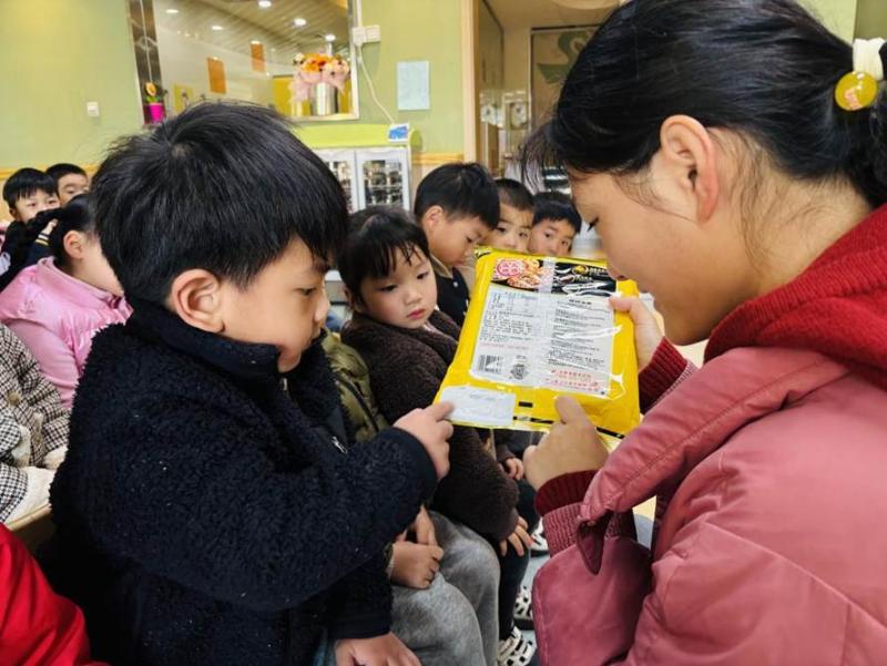 在实物观察实践环节,老师们准备了各类物品的正版包装袋,带领幼儿细致观察包装上的生产许可标志、绿色食品标志、生产日期、保质期等关键信息,教孩子们学会辨别安全合格的食品。同时,通过对比完好的正版包装与仿冒的破损包装,让幼儿通过看、摸、闻等感官体验,直观感知正品与假冒伪劣产品的差异,逐步建立对“假冒伪劣”的清晰认知。