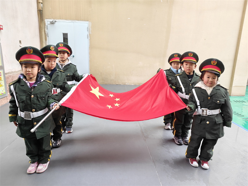 国旗飘扬间,全园师幼齐声唱响园歌,稚嫩的歌声回荡在校园,满是对幼儿园的美好期许。