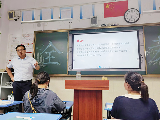 除关注学生学业成绩外,班主任李昆还从家庭教育角度,为家长们提供了宝贵建议。他强调,家庭是孩子成长的第一课堂,家长是孩子的第一任老师,家庭教育在孩子成长过程中起着至关重要的作用。他建议家长在暑期充分利用家庭会议这一平台,多与孩子沟通交流,避免“家长做派一言堂”,了解孩子的内心想法与需求,给予充分关爱与支持;同时,要为孩子营造良好的学习和生活环境,科学制定暑期学习生活计划,避免“脚踩西瓜皮,滑到哪里是哪里”的随意性,更要以身作则,培养孩子良好的品德和行为习惯,做到劳逸结合,让孩子度过一个充实且有意义的暑假。
