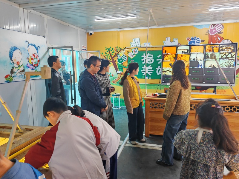 在活动中心党支部负责人李恒和主任高菲的陪同下,潜山市同仁首先实地参观了活动中心的各类专业教室、功能场馆以及特色课程实践现场。从充满创意的手工教室、科技感十足的机器人编程课堂,到锻炼体魄与意志的CS野战体验,再到传承文化的非遗工坊,一行人细致观摩、不时驻足询问,对动静结合、传统与现代交融的课程体系表现出浓厚兴趣。