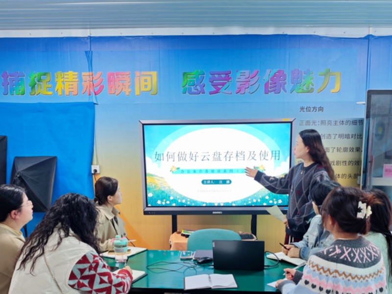 为进一步优化活动中心文件管理机制,推进数字化办公转型,2025年11月7日下午,活动中心办公室组织开展了云盘存档及使用工作专题培训。本次培训由办公室主任汪娜主持并担任主讲,办公室全体工作人员参与学习,旨在通过系统化培训提升团队文件归档的规范性与效率,为办公室党建及行政工作提供坚实的数据支撑。