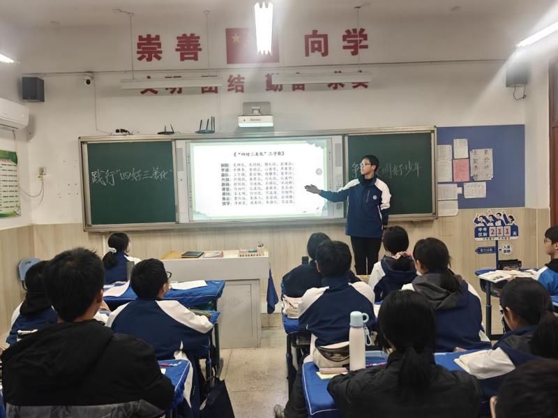 “何为‘四好’?是升旗时挺拔的站姿,是课堂上专注的坐姿,是走廊里有序的行姿,是交往中友善的言辞!”校团委书记罗二杰手持话筒,用鲜活的校园场景解读活动内容,从“站得好”的队列要求到“美化心灵”的品德培育,再对“四好三美化”学生文明素养做出具体要求,让文明准则成了可触可感的日常。