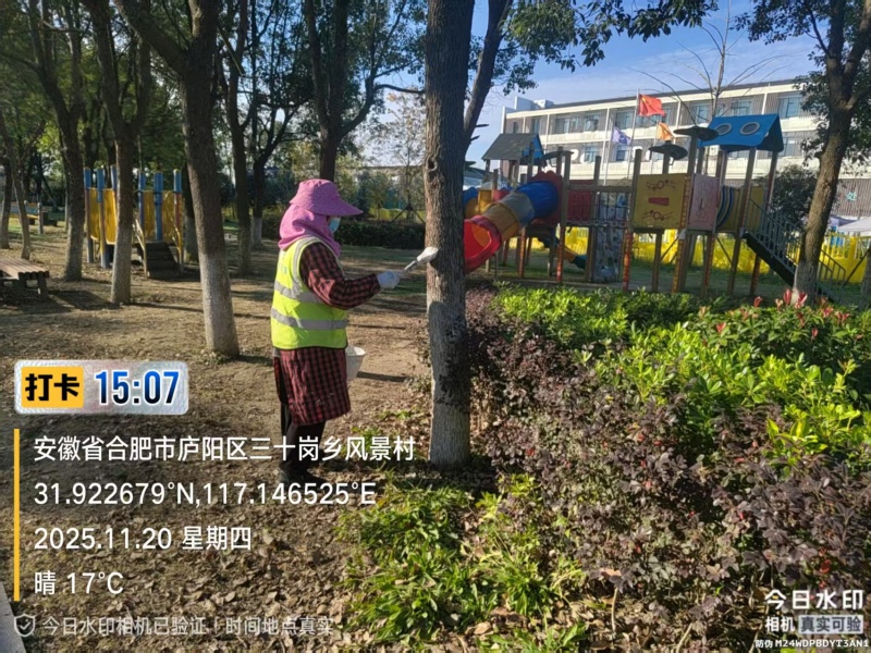初冬时节,气温渐降,树木即将进入冬季休眠期。为有效保障校园内树木安全越冬,增强树木抗寒、防虫能力,营造整洁美观的校园环境,近日,庐阳区青少年活动中心开展了冬季树木涂白养护专项行动,组织绿化人员为校园内的乔木 “穿” 上了整齐划一的白色 “防寒衣”,为冬日校园增添了一道独特的风景线。